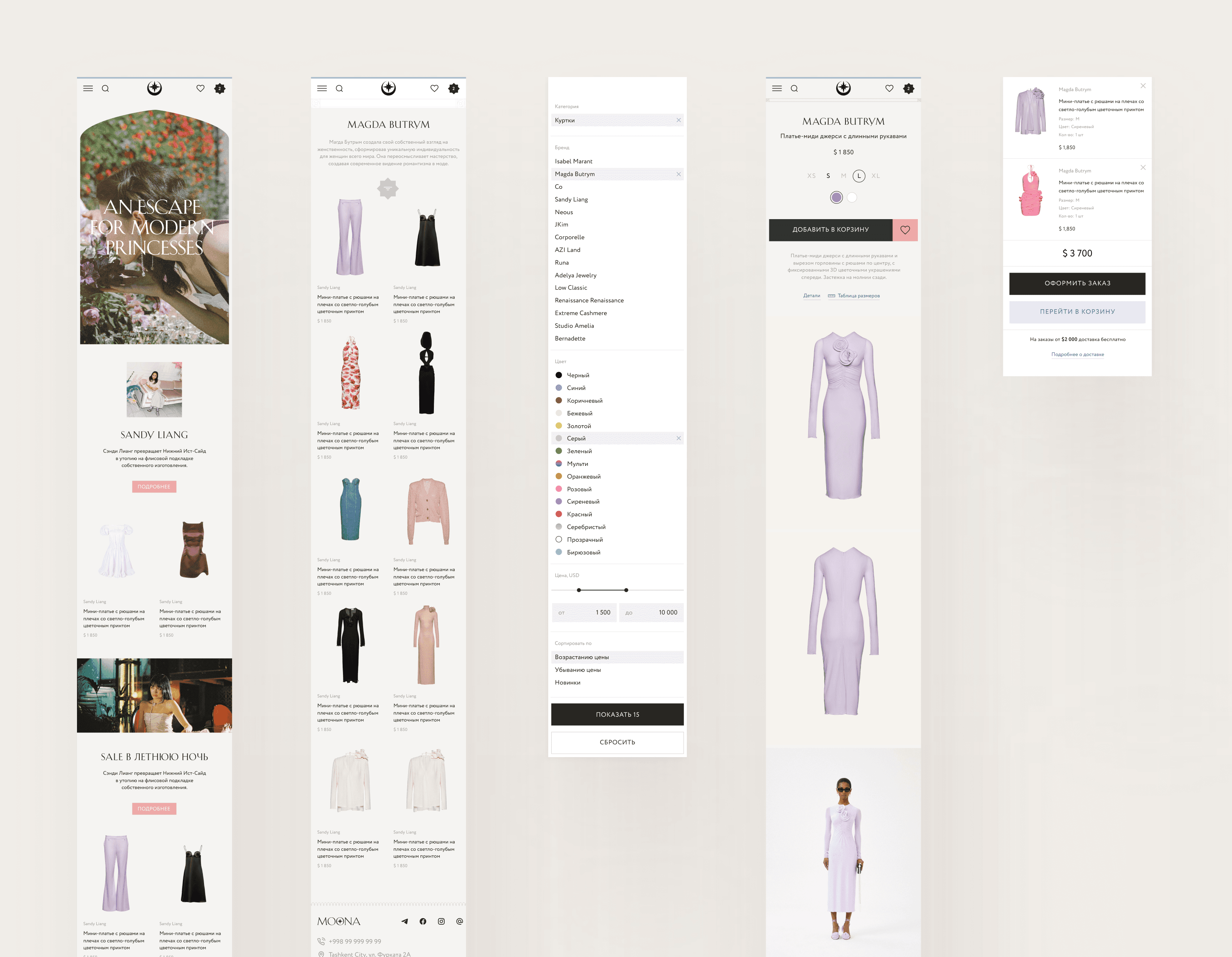 Explored visual language drawn from fashion editorials, boutique interiors, and art publications. Prioritized composition, breathing room, and a subdued palette to highlight product presence. The interface was designed to feel effortless – elegant in rhythm, intuitive in flow, and grounded in visual hierarchy that speaks without shouting.