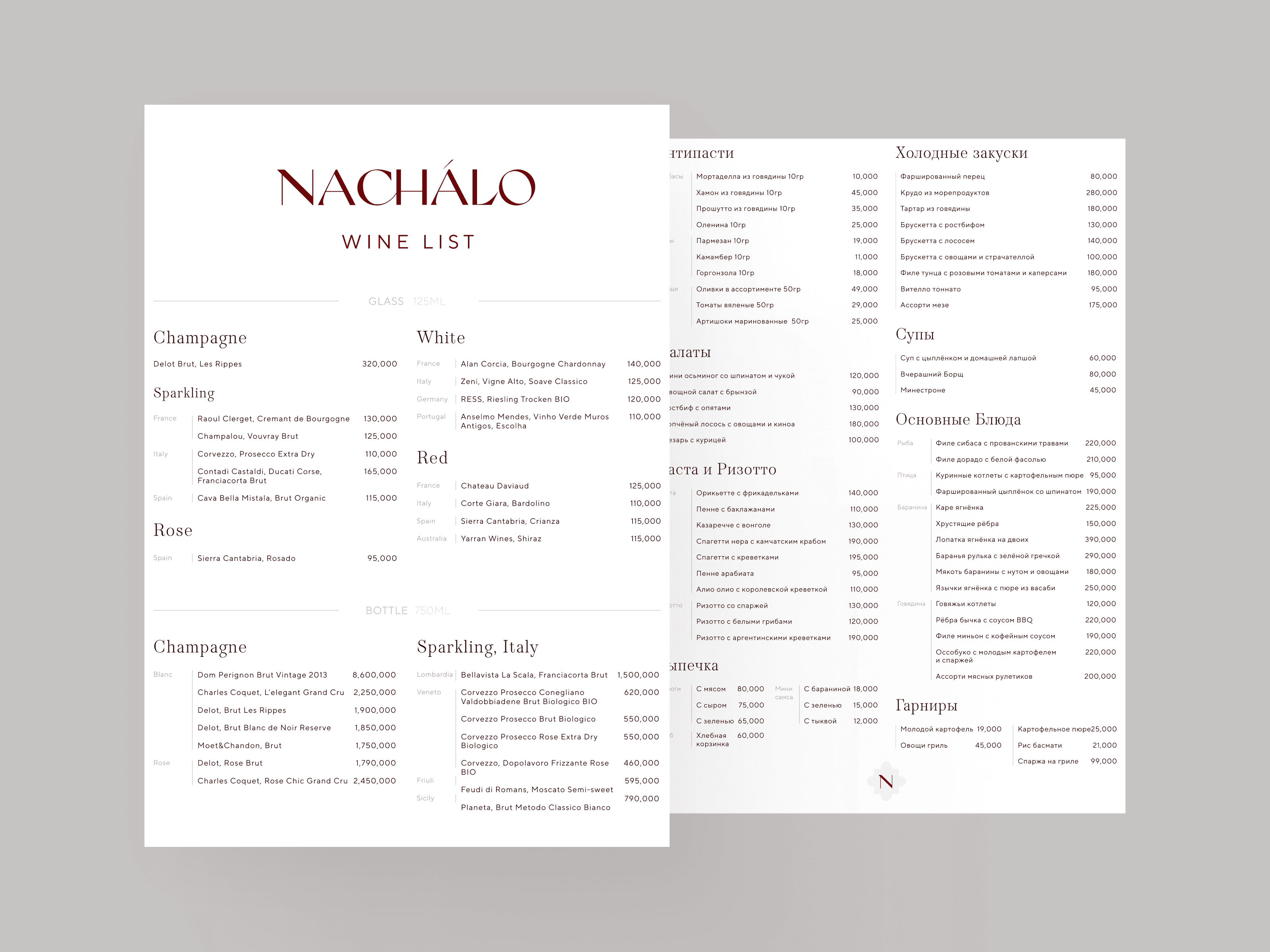 Led a small multidisciplinary team including a graphic designer, a calligraphy artist, and a web designer. Together, we created a custom brand book, designed the menu and wine list, and developed supporting assets: packaging, signage, printed collateral, SMM and storefront elements. Paid special attention to tactile materials, typographic hierarchy, and balance between modern restraint and expressive accents.