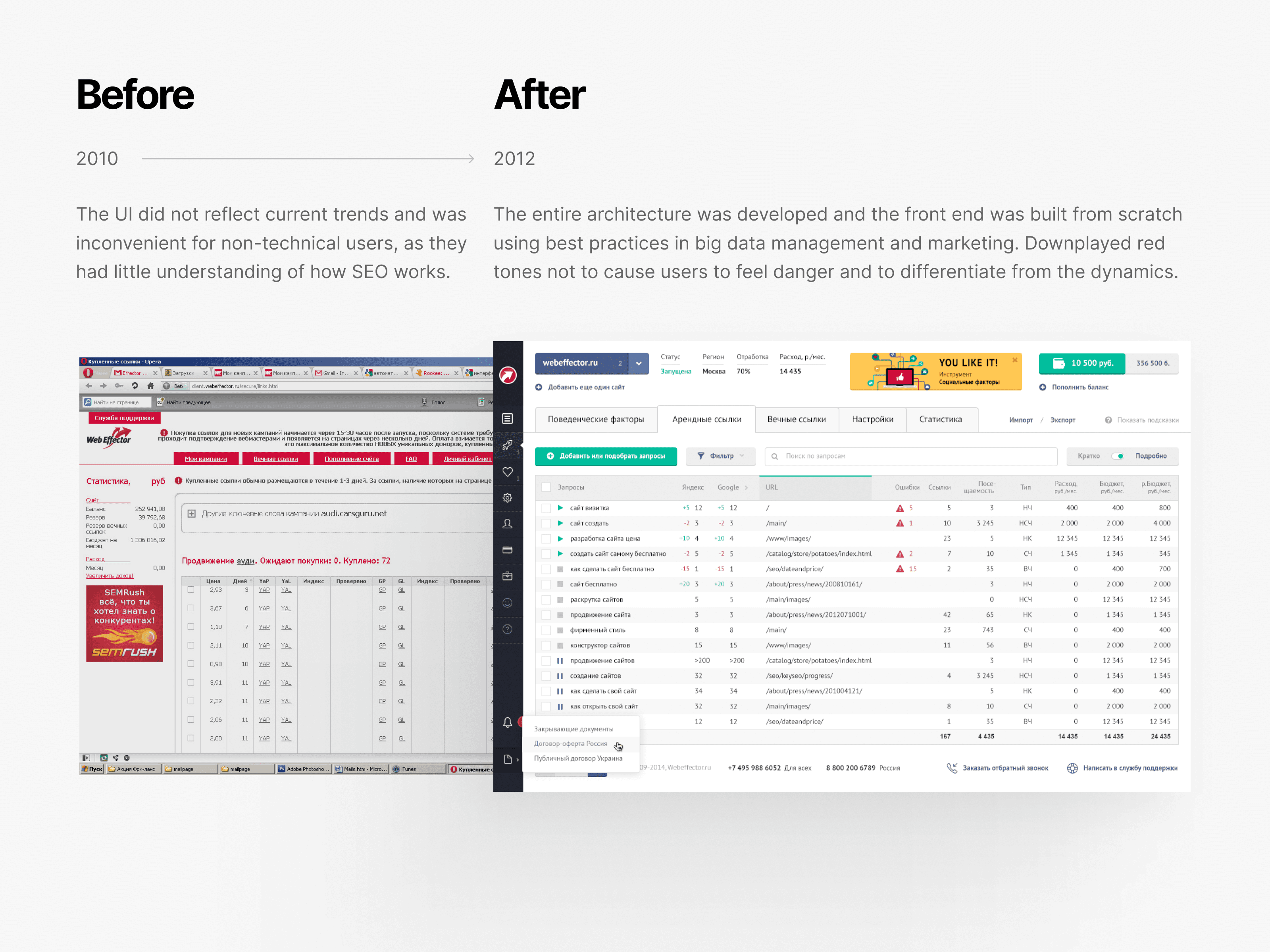 Conducted user research and interviews with marketing teams to understand workflow pain points in campaign setup and reporting. Created a scalable design system with reusable components for ads, backlinks, and ranking analytics. Designed multi-layer dashboards, real-time performance tracking, and UX flows for task automation. Collaborated closely with developers via Redmine, Jira and Confluence, ensuring design-to-dev accuracy and consistent UI behavior across web modules.
